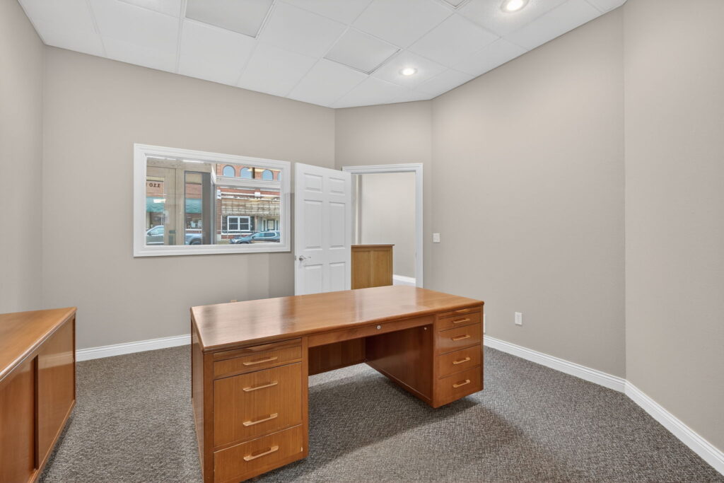 Downtown Panora Commercial Opportunity. Great commercial building located in the downtown business district of Panora, offering excellent visibility and functionality. The main level features an open reception area with large windows, four private offices, a half bath, and a small storage room, making it ideal for a variety of business uses. The upper level hosts a one-bedroom apartment with a long-term tenant, providing built-in income potential, along with a large storage area. The unfinished basement offers additional space with plenty of room for storage. This property presents a unique opportunity to own a versatile commercial building in a prime downtown location with income-producing potential.