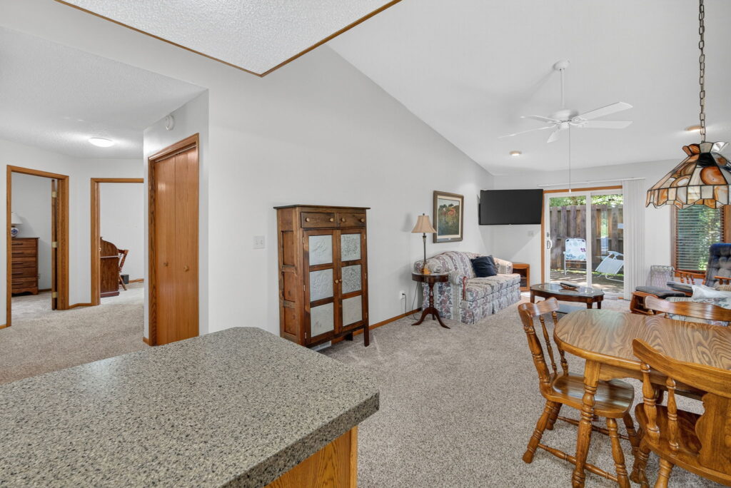 A carefree and comfortable lifestyle awaits you! No more mowing, raking, or shoveling when you move into this Panora condo. Centrally-located in the popular Deerfield neighborhood, it’s an easy walk to the schools and downtown, yet still feels private and peaceful. You’ll have plenty of room with three beds/two baths in over 1,225 sq ft of living space. You’ll appreciate the end unit with large primary suite with attached full bath and walk-in closet, convenient laundry area, open concept living with kitchen, dining and living. Plus a bonus room, off the garage to extra space to spread out. Enjoy outside time? Create your own nature retreat with the deck and backyard area! Even with all this living space, there is a one stall garage and lots of storage throughout the smart floor plan. A simpler lifestyle can be yours, come see ALL this condo has to offer, both inside and out!