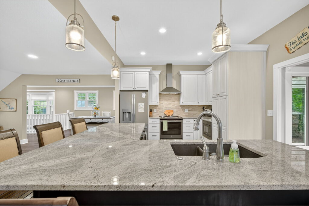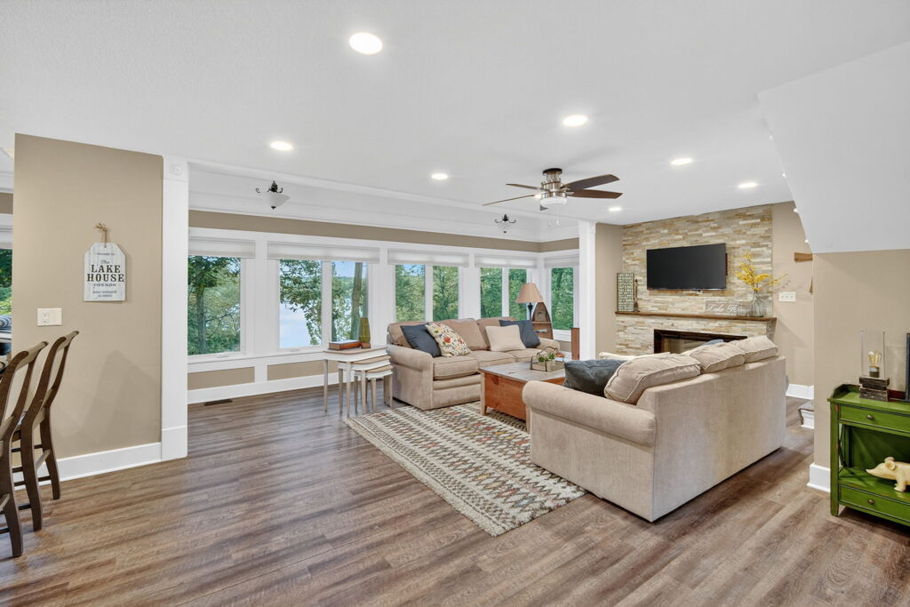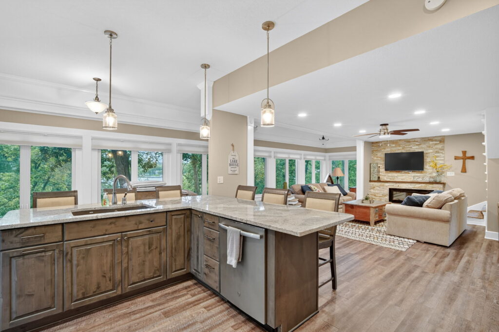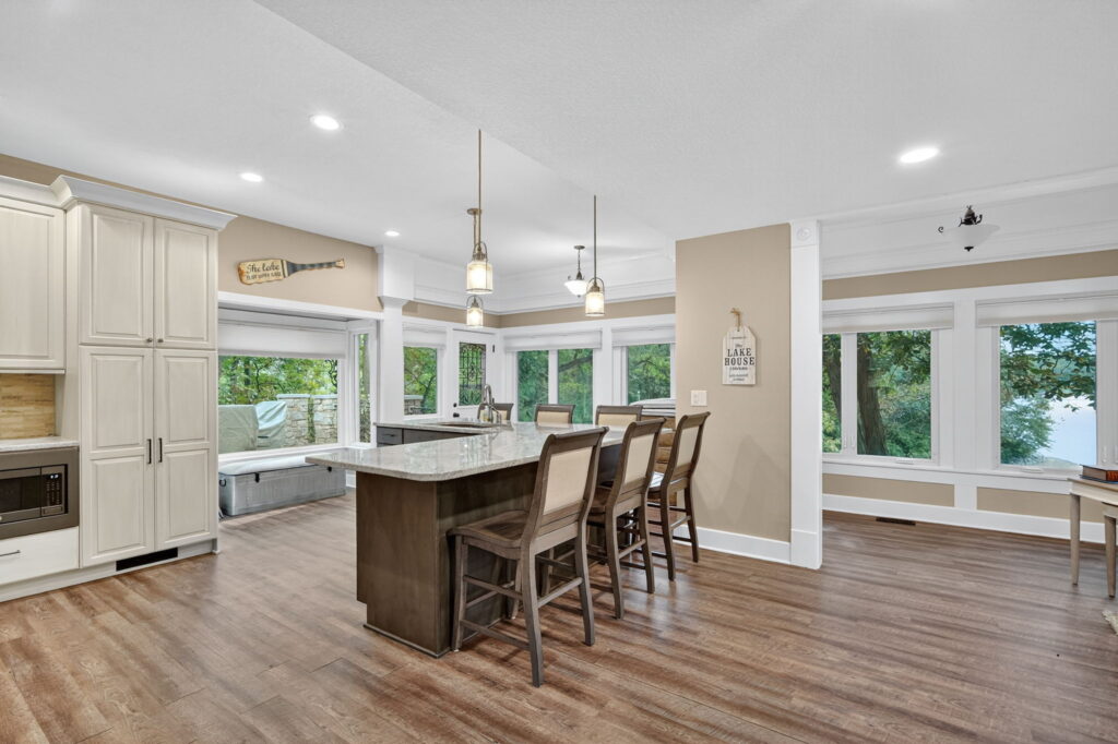 Discover a truly unique two-story stone waterfront home that blends timeless charm with modern updates on the shores of Lake Panorama. This beautifully remodeled residence offers 4 bedrooms & 4 bathrooms, including a luxurious master suite featuring a tiled walk-in shower. The interior has been thoughtfully updated with whitewashed cabinets, granite countertops, and luxury vinyl plank flooring throughout, creating a warm yet contemporary feel. A cozy fireplace anchors the main living space, while the lower-level family room with wet bar provides the perfect spot for entertaining. Step outside to enjoy breathtaking lake views from your quiet cove location. This property includes a boathouse with rooftop patio & an impressive outdoor kitchen, making it ideal for gatherings and lakeside relaxation. Mature trees offer both shade and privacy, while carefully landscaped details enhance the home’s curb appeal. Located directly across from the tee box of Hole 17 at Lake Panorama National Golf Course, this home offers unmatched convenience for golf enthusiasts as well as boaters. Whether you’re enjoying morning coffee on the deck, hosting guests in the outdoor living spaces, or taking advantage of direct lake access, this property delivers the ultimate in lake lifestyle. A rare opportunity in an amazing location—schedule your private showing today! | |||||