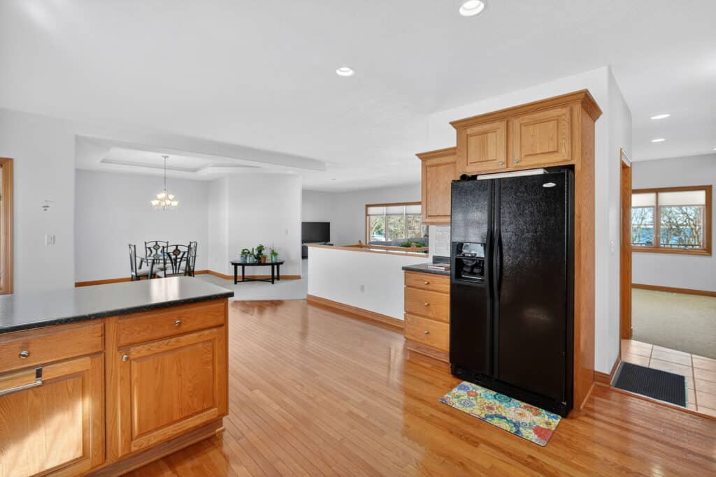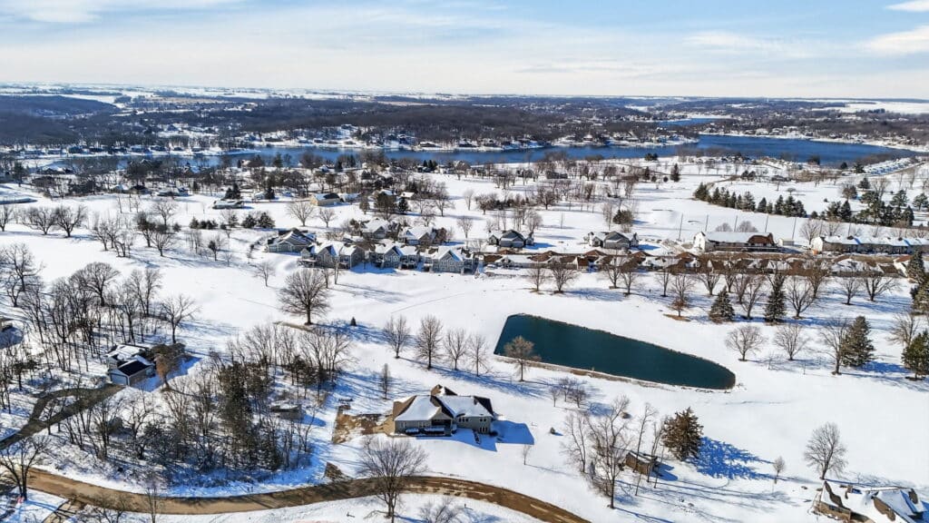Experience the best of golf course living with breathtaking views of Lake Panorama! This beautifully positioned east-side home sits on Hole 5 of Lake Panorama National Golf Course, offering stunning lake views on one side and picturesque pond views on the other. Designed for both comfort & entertaining, the open-concept main level features a cozy living room with an electric fireplace that flows seamlessly into the spacious kitchen & dining areas. Hardwood floors add warmth & character, while sliding glass doors lead to the back deck featuring a screened in area—perfect for soaking in the incredible scenery and beautiful Iowa days. The owner’s suite is a nice retreat with panoramic lake views, a generous walk-in closet, & a full bath complete with a walk-in shower & relaxing soaker tub. The main floor also includes a large mudroom with laundry & storage, plus a convenient half bath. Downstairs, the walk-out lower level offers a spacious entertainment room with patio access, two additional bedrooms, a full bath, and an oversized storage room to meet all your needs. You will appreciate the attached oversized 3-car garage with durable epoxy floors to house your vehicles, golf cart and boat. The property spans 3 lots & includes an additional storage shed, providing extra space & flexibility. This is a rare opportunity to own a golf course home with unmatched lake views, check it out today!