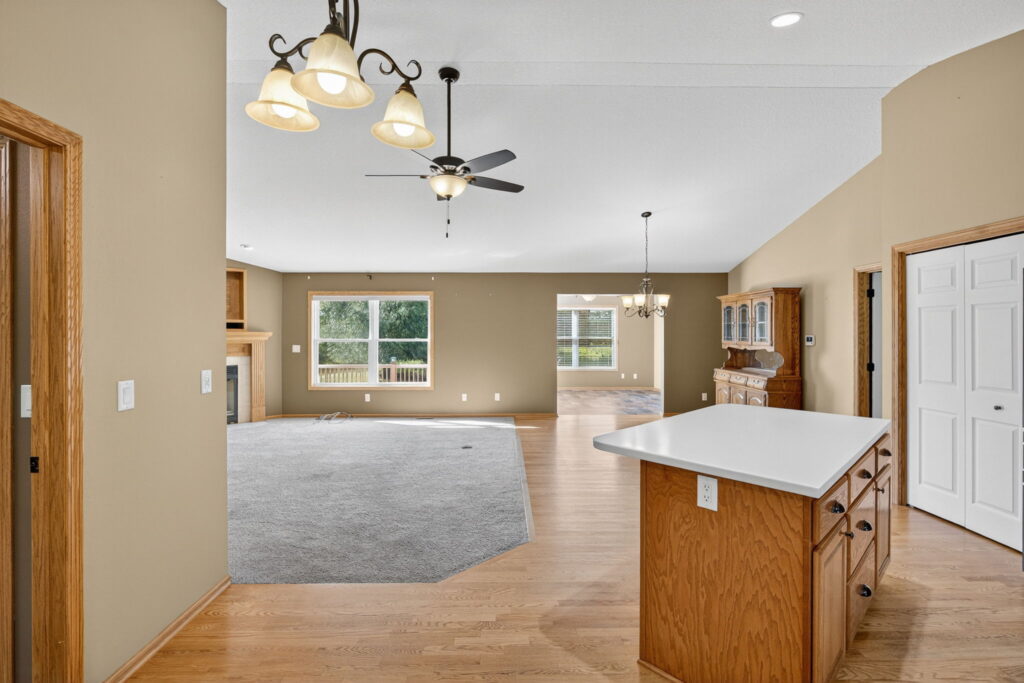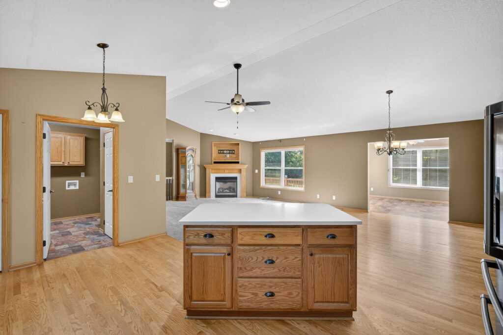 Spacious West Side Offshore Home at Lake Panorama. Located close to Sunset Beach, this charming home sits on three generous lots, offering room to spread out and enjoy the outdoors. The open-concept main level features a cozy gas fireplace in the living room, a dining area, and the kitchen with warm wood cabinetry, quartz countertops, tile backsplash, and newer appliances. A sunroom off the main living space gives you room to spread out and provides peaceful views of the large, fenced backyard. The primary suite offers comfort and convenience with a walk-in closet and shower bath. Two additional bedrooms, a full bath, and laundry complete the main floor. The finished lower level is perfect for entertaining, boasting a spacious family room with built-in cabinetry, a full kitchen, two more bedrooms, an office, and ample storage.