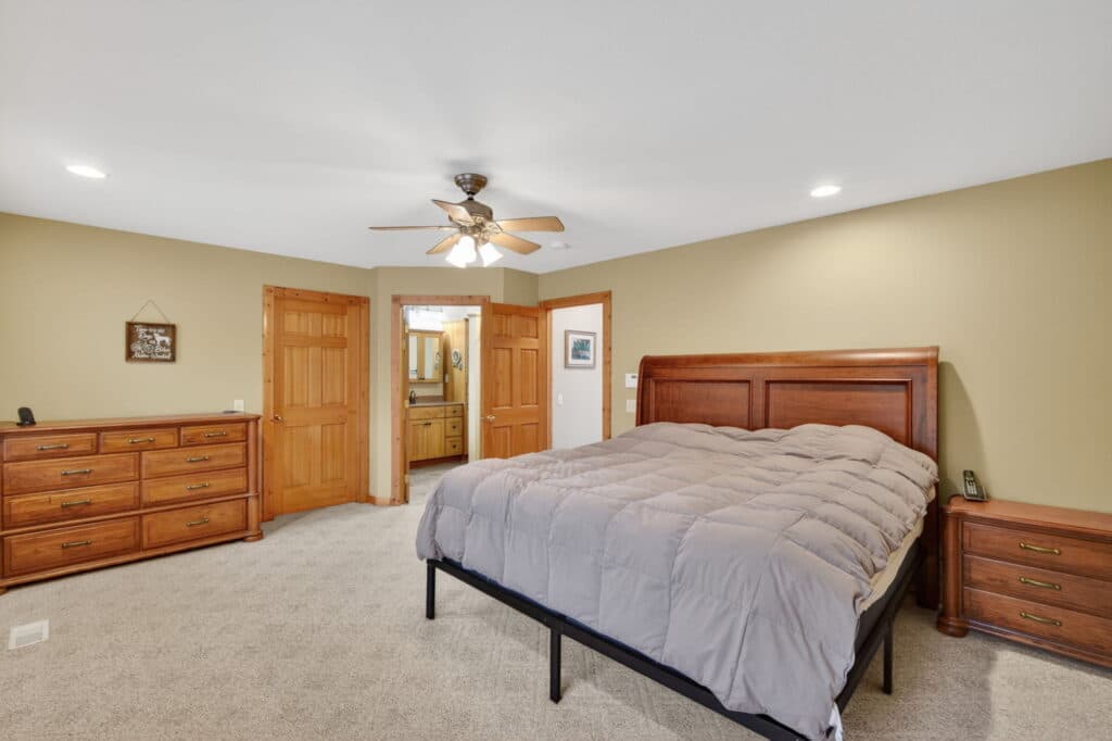 Situated on just under an acre, this walkout ranch home invites you to relax & unwind in a peaceful, wooded setting. Step inside to a warm inviting main level featuring wood floors throughout the living area, a striking vaulted ceiling, & a gas fireplace that anchors the space. Expansive windows bring in natural light while showcasing the serene outdoor views. The spacious kitchen offers room for dining & gathering, making it ideal for everyday living or entertaining. The main floor primary suite provides a retreat with a large walk-in closet, an additional closet, & a private bath with a walk-in shower. A convenient mudroom & laundry area enhance the ease of main-level living. Upstairs, a generous loft overlooks the living area below & includes a full bath & additional storage—perfect for guests, a home office, or flex space. The partially finished walkout basement expands your living options with an entertainment room, a non-conforming bedroom, a ¾ bath, & a dedicated storage area. Outside, enjoy the beauty and privacy of nature from the large deck or unwind on the stone patio—ideal spaces for quiet mornings or evening gatherings.