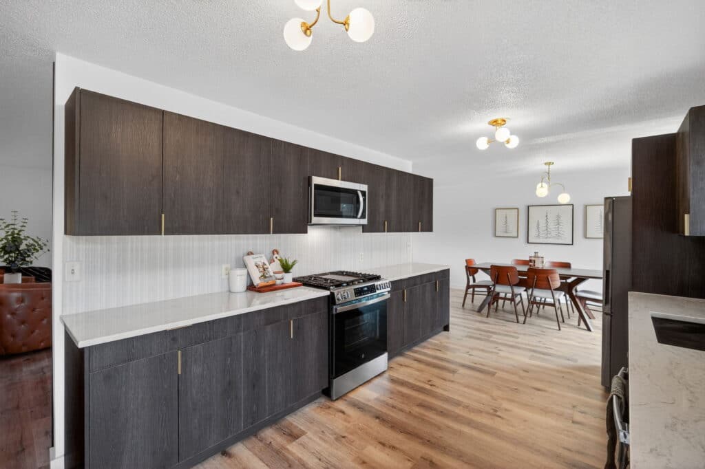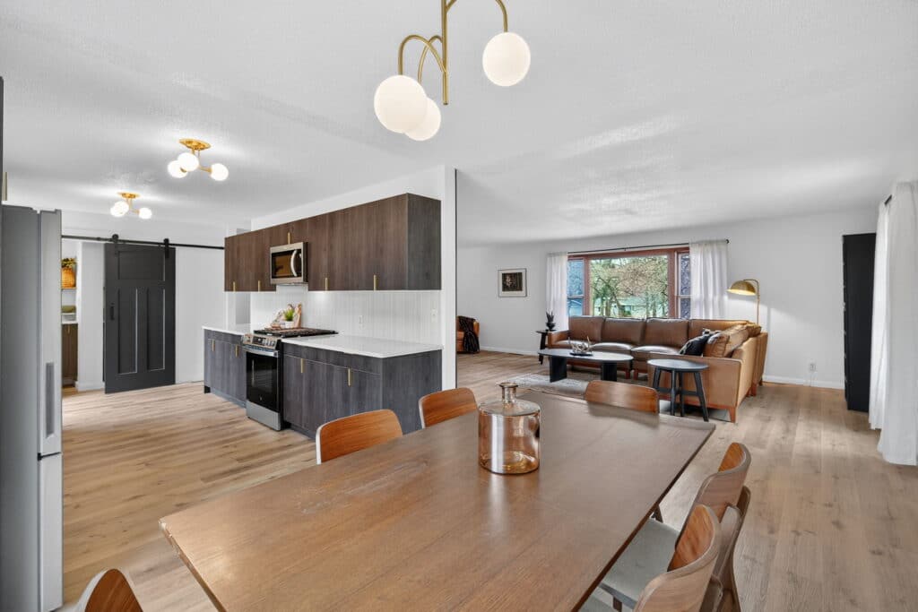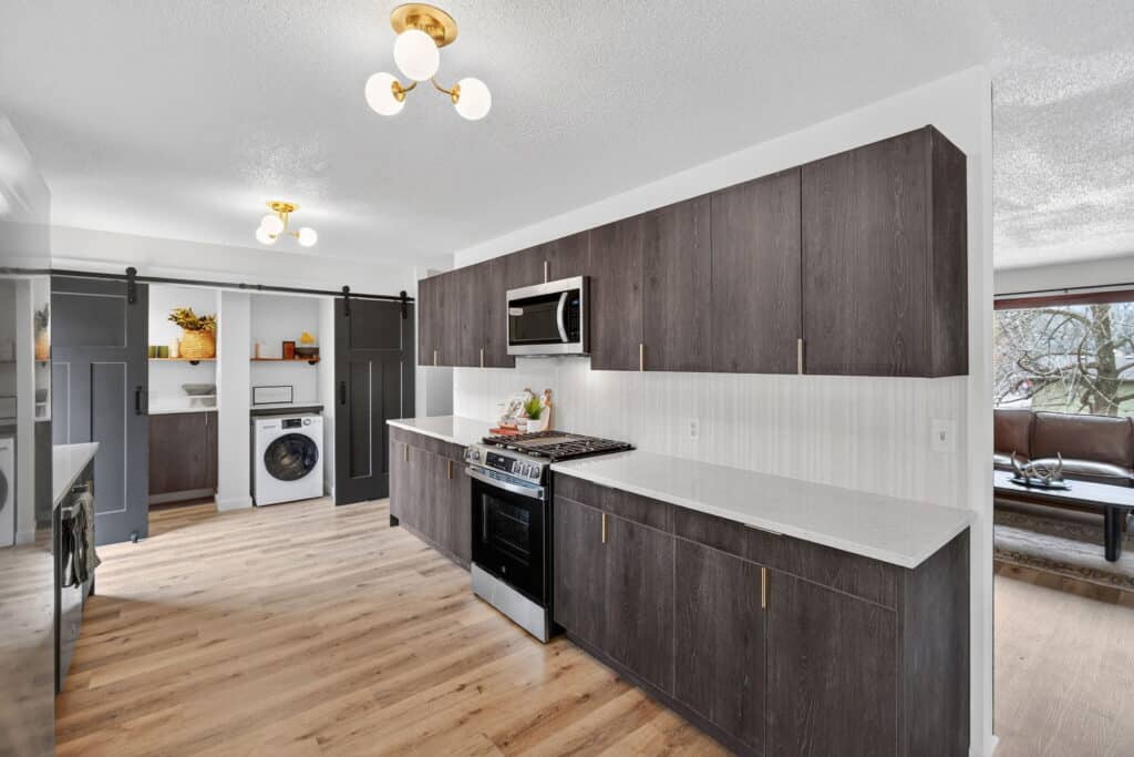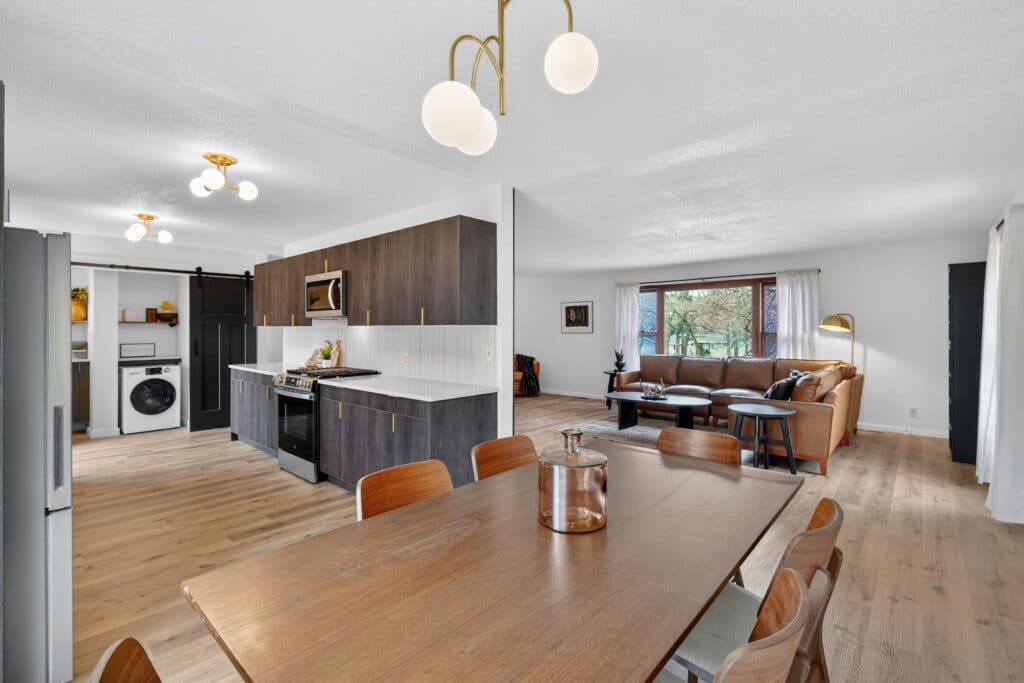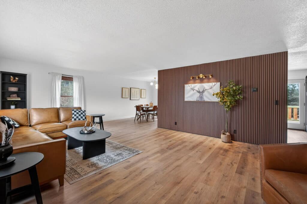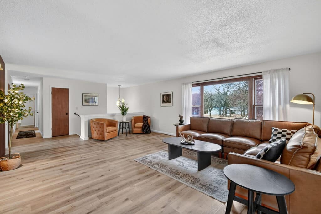 Beautifully updated offshore home on the west side of Lake Panorama! Step inside to a spacious living area featuring durable LVP flooring that flows seamlessly into the dining space and galley-style kitchen. The kitchen offers dark cabinetry, quartz countertops, stainless steel appliances, a tile backsplash, and a pantry tucked behind charming barn doors alongside the convenient main-floor laundry.