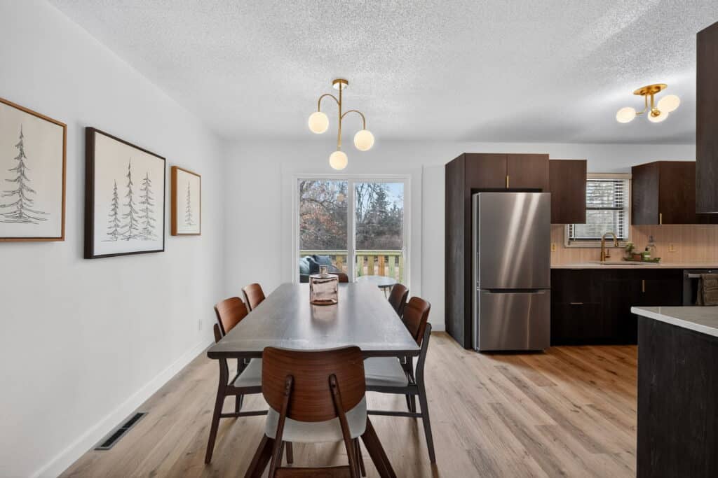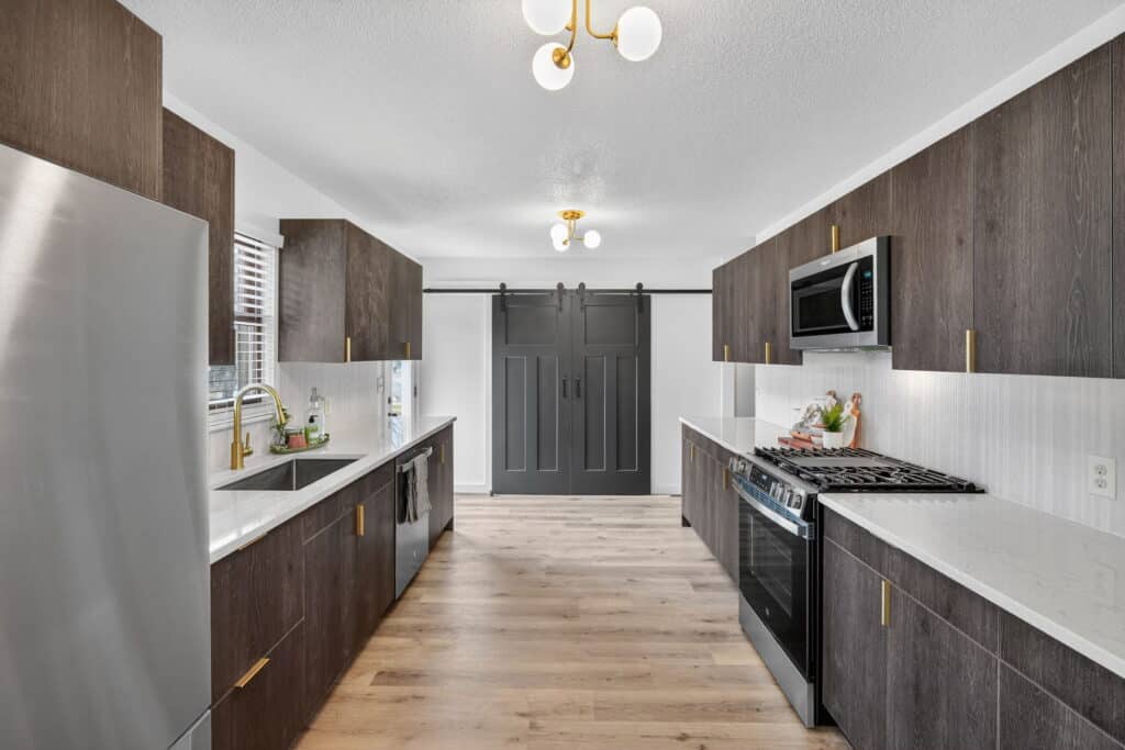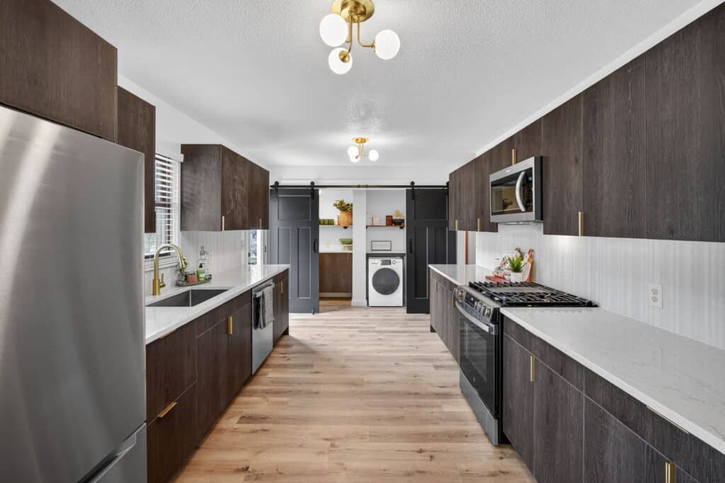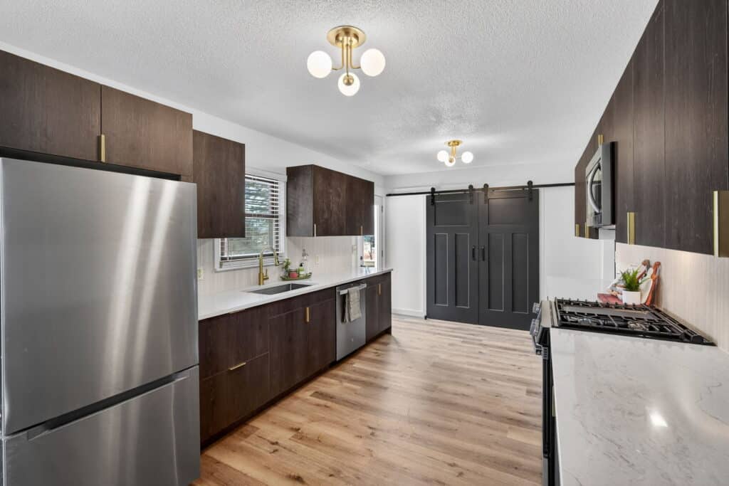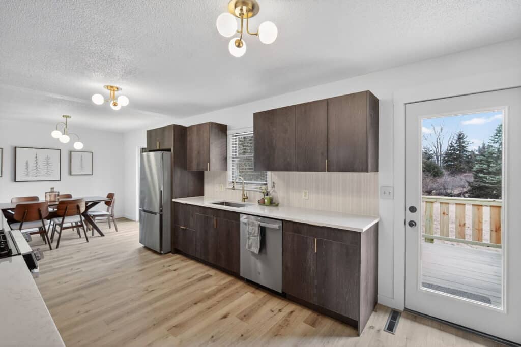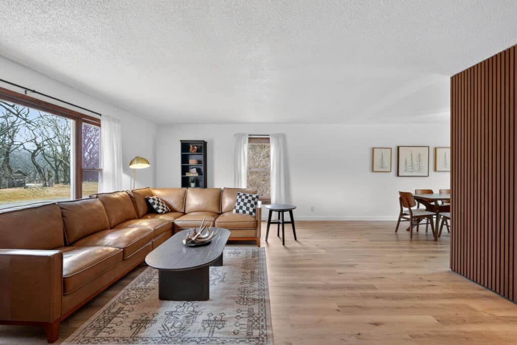 Beautifully updated offshore home on the west side of Lake Panorama! Step inside to a spacious living area featuring durable LVP flooring that flows seamlessly into the dining space and galley-style kitchen. The kitchen offers dark cabinetry, quartz countertops, stainless steel appliances, a tile backsplash, and a pantry tucked behind charming barn doors alongside the convenient main-floor laundry.