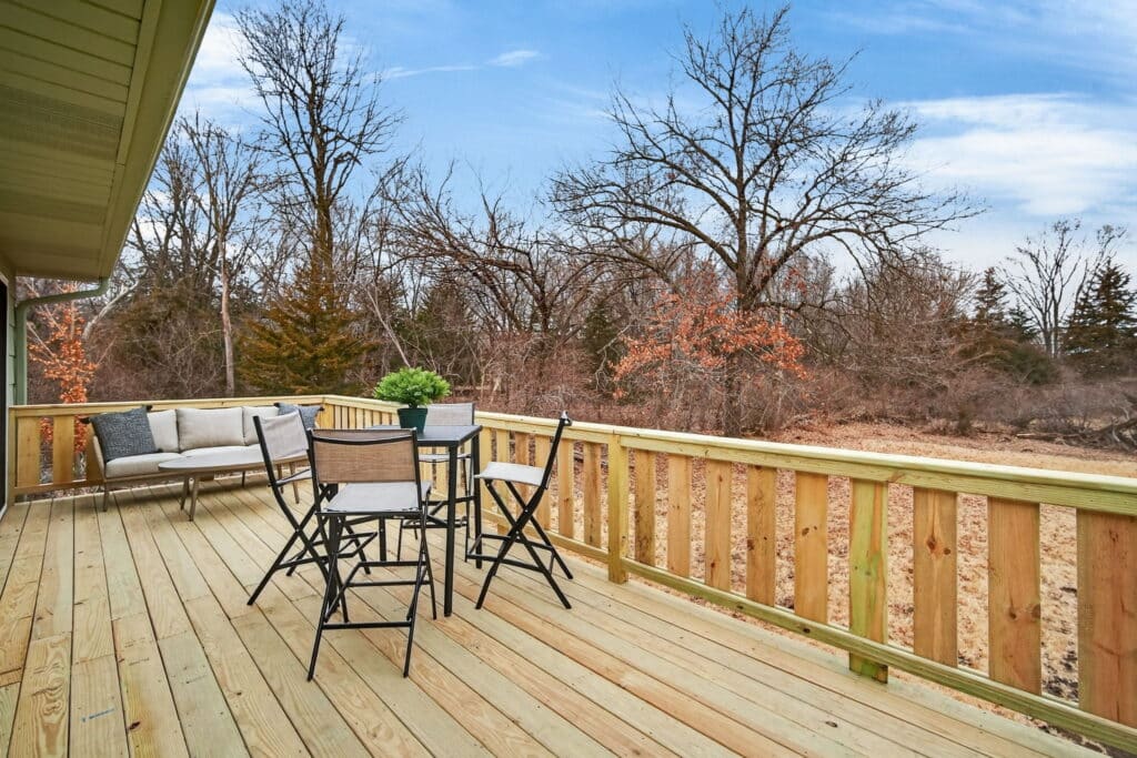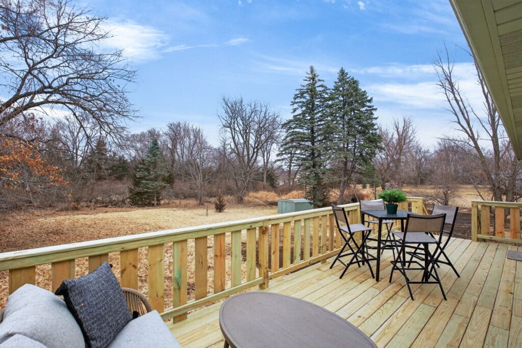 Just off the kitchen, step out onto the new, large deck, perfect for relaxing and enjoying the privacy of the spacious backyard.